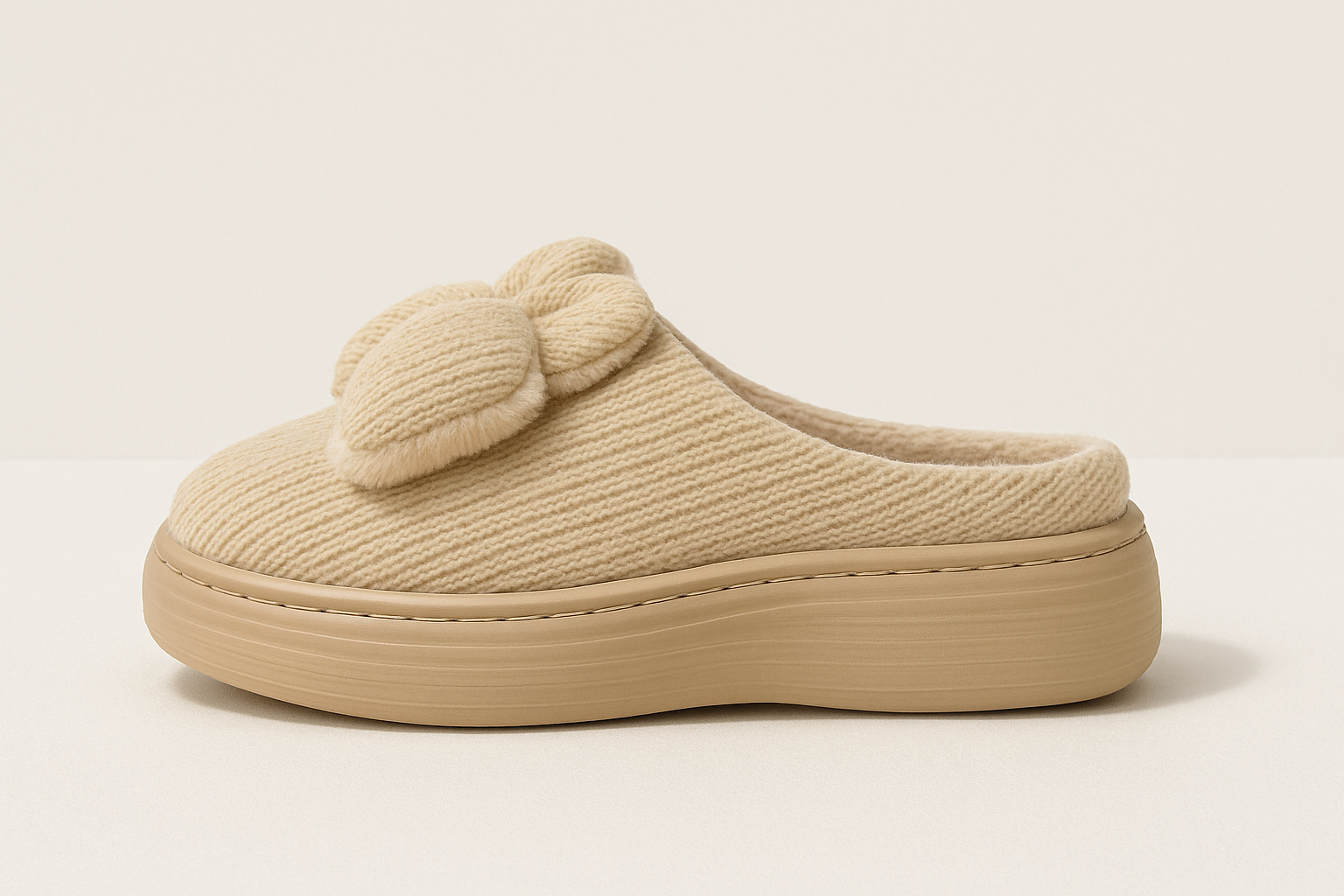 Beige Bow Slippers